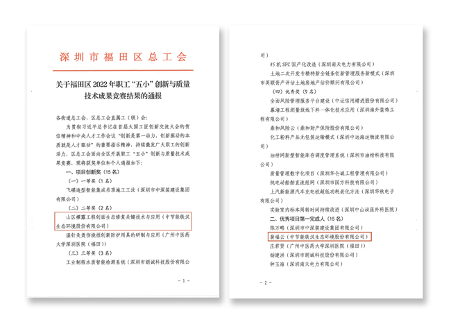 中節(jié)能鐵漢在福田區(qū)職工“五小”創(chuàng)新競(jìng)賽中取得優(yōu)異成績(jī)